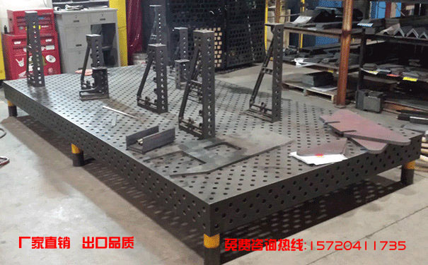 三維柔性焊接平臺需要進行熱處理,因為它是一個大型鑄件必須熱處理以提高其使用價值。為了防止變形三維柔性焊接平臺,升降平臺,三維柔性焊接的,使用相對強勁繩子捆綁在三維柔性焊接平臺,三維柔性焊接平臺安裝在卡車上的光滑線的四個起重孔。三維柔性焊接平臺四個支撐點墊,使其更加堅實。檢查和三維柔性焊接平臺準確度是非常高的。