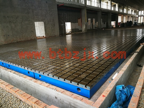 接下來進入正題了,有的客戶可能看到小編這個標題“大型T型槽鑄鐵平臺生產中如何?”肯定以為小編接下來要介紹生產工序,其實是不對的,小編今天要讓大家看一下半成品的T型槽鑄鐵平臺,往常大家都是觀看成品,不到廠家去查看是不會查看到平臺制作一半以后是怎樣的,有的客戶會讓我們把半成品的照片發過去,但這也是極少的客戶會要求這樣。其實如果您讓生產廠家在制作大概整個工期的?時,去索要圖,既能看看平臺的厚度、平整度、完整度等因素,也可以督促工期的進展,是一舉兩的。